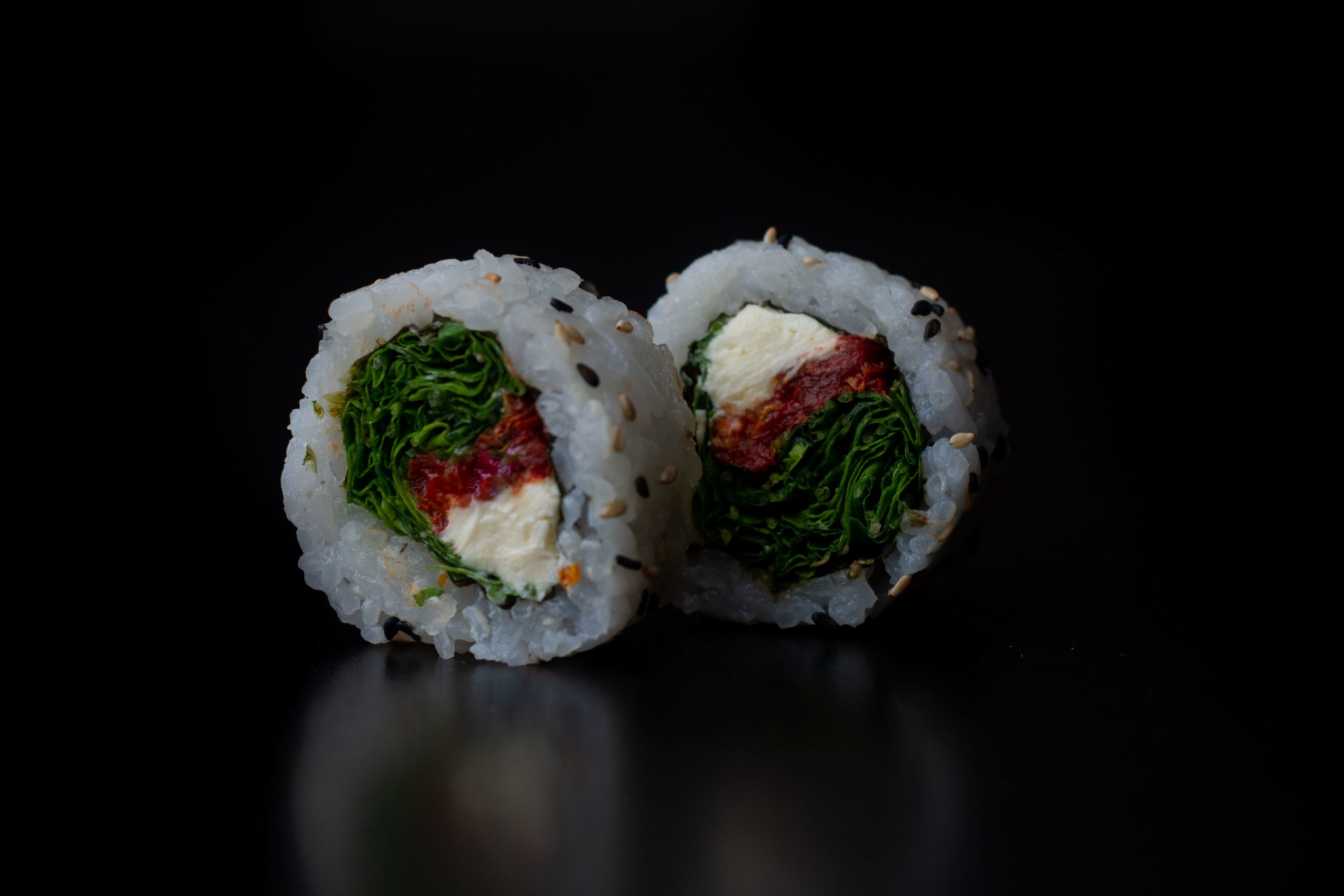 Roll relleno de Queso Philadelphia, Rucula y Tomates Secos.